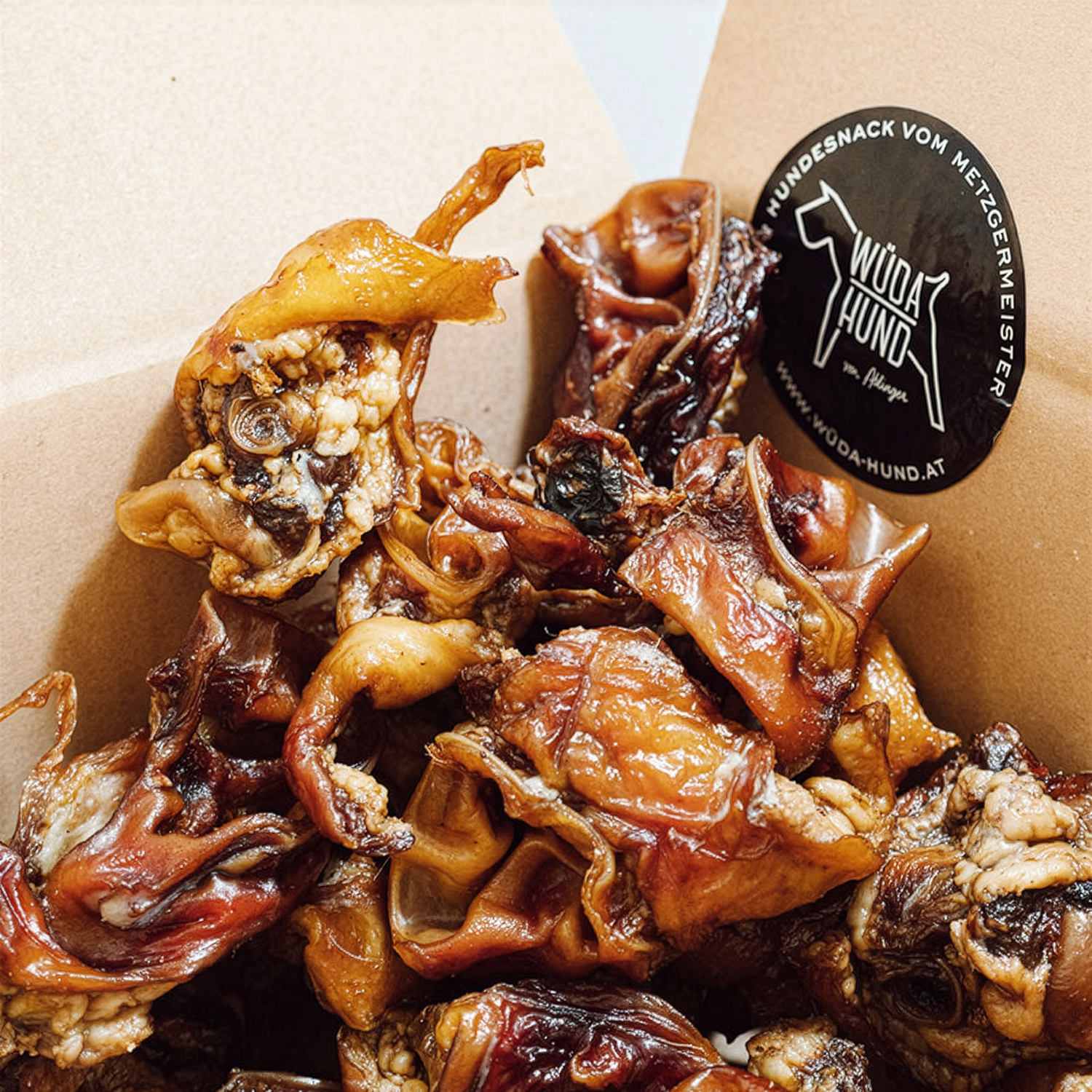 Luftgetrocknete Ohrmuscheln, zu 100% von österreichischen Schweinen. Die Ohrmuscheln werden schonend in der Selche getrocknet und sind ohne jegliche Zusatzstoffe. Sie sind ein knuspriger Snack und aufgrund des hohen Anteils an Proteinen und Fett der perfekte Energielieferant für Sporthunde, Jagdhunde oder auch Familienhunde.